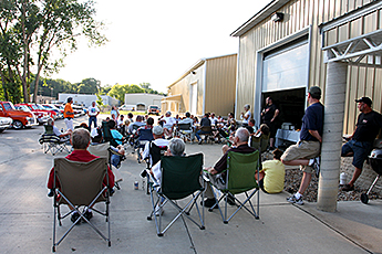 Everyone meeting at Dave Ruhs' shop on Sunday evening.