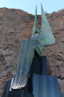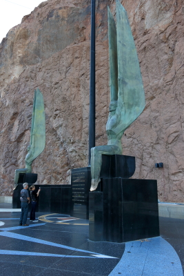 If you stop the Hoover Dam on the Nevada side you will see the Winger Figures of the Republic. They are 30-foot tall statues. They have weathered to a patina green with the toes a burnished soft gold by the numerous tourist hands touchig them. This is said to bring the person touching the feet good luck.