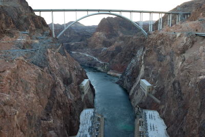 Hoover Dam was so amazing to see in person! The Dam is 726 ft tall. More than 8.5 million pounds of dynamite was used to blast the foundation for the dam and 8 miles of tunnels through the canyon walls. At its base it is as thick (660ft) as two football fields end-to-end. There is enought concrete in the Dam to build a 2 lane road from Seattle Washington to Miami Florida. The peak electric periods runs enough water through the generators to fill 15 averaged sized swimming pools (20,000 gallons each) in 1 second. Lake Mead is the largest reservoir in the USA & contains enought water to flood the entire state of New York with 1 ft. of water (26 million acre ft.). Every state in the USA furnished supplies and materials for the construction of the Dam.